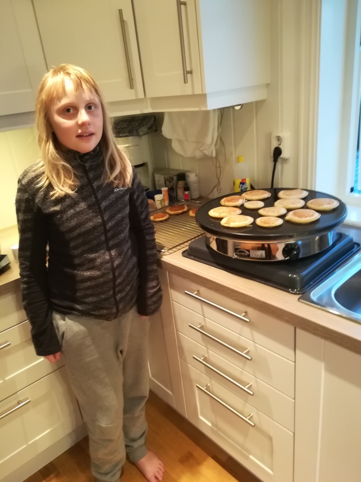 Leonard lager mat i huset. Veldig opptatt av at maten smaker godt og ser godt ut!
